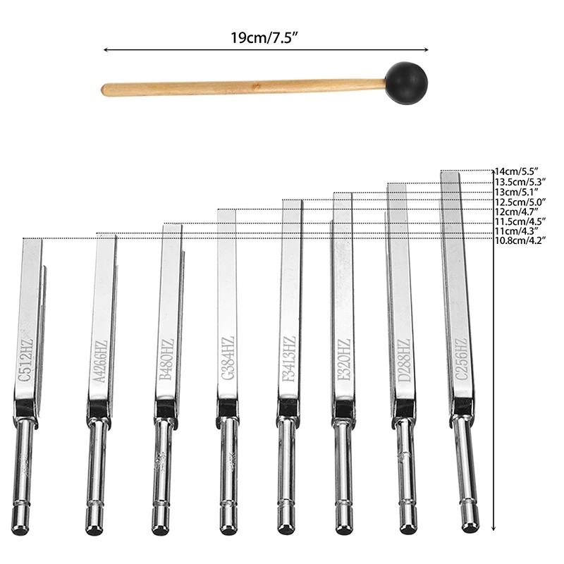 Juego De Horquilla De Sintonización Acero, Herramientas Médicas 256-512Hz, Diagnóstico Médico Vibración Física La Salud Terapia Vibración De Mazo, 8 Uds.