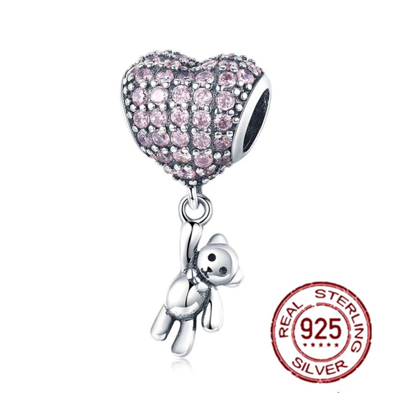 Abalorio De Plata De Ley 925 Para Mujer, Accesorio Compatible Con Pulseras Pandora Originales, Globo De Oso Regalo, Joyería Artesanal