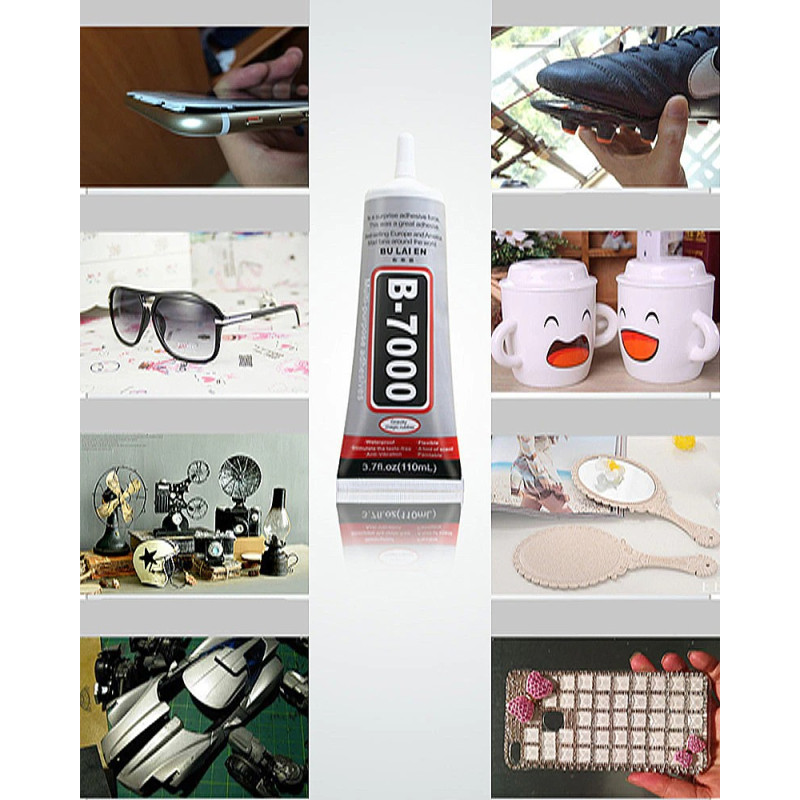 B7000 Unión se pueden pegar más materiales, es metal, vidrio, cerámica, piedra, bambú, madera, tela, cuero, PE, PP, PVC, ABS, Nailon, esponja, película, textil, componentes electrónicos, plástico, caucho, fibra, tipo de papel, vidrio, diamantes de imitación y otros materiales tienen muy buenas propiedades de adhesión