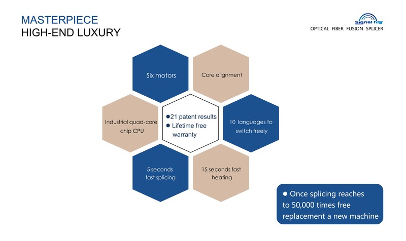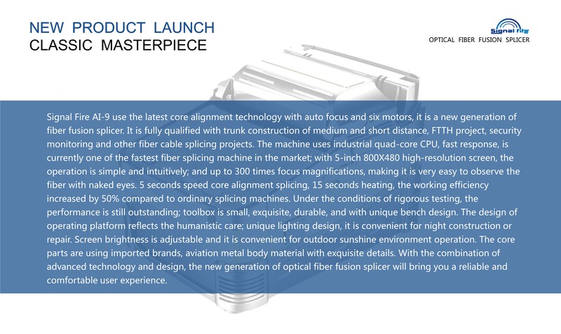 AI-9 máquina de empalme de fusión con 6 motores en funcionamiento, velocidad de empalme de 5 segundos.