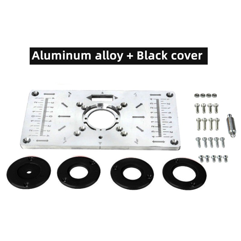 1. Un juego de herramientas de Banco de carpintería incluye 1 Placa de inserción de cepilladora de mesa, 4 anillos de inserción cepilladora y algunos tornillos de fijación.2. Hecho de aleación de aluminio, duradero y no se oxida fácilmente.