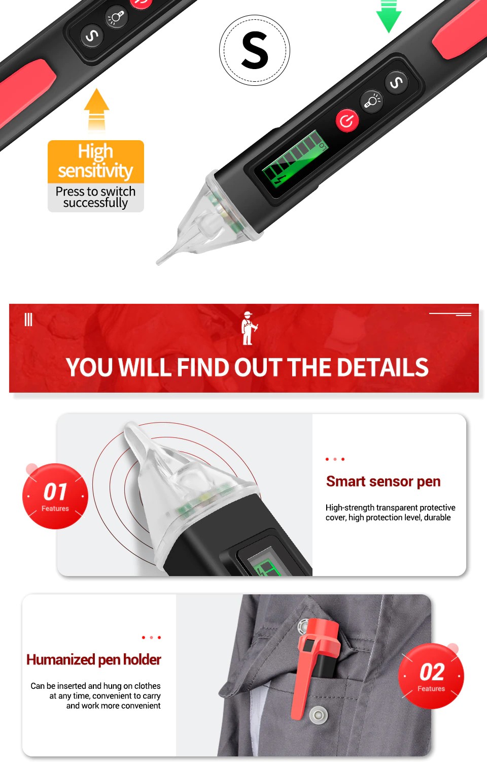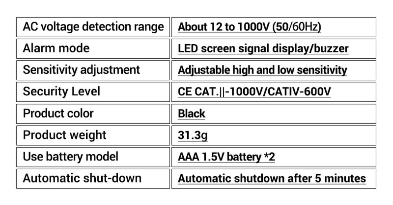 1 x Detector de voltaje CA sin contacto (la batería no está incluida).
