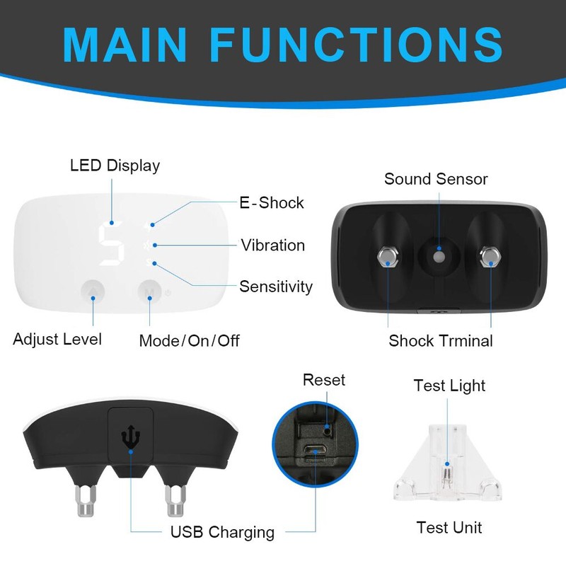 Diseño del botón táctil: Todo el botón tiene sensibilidad táctil. Mantén pulsado 3 segundos para entrar en el modo de configuración. Puede evitar que las mascotas toquen y cambien por error la configuración de la máquina. La pantalla Led Digital muestra modos, niveles de batería y niveles de sensibilidad.
