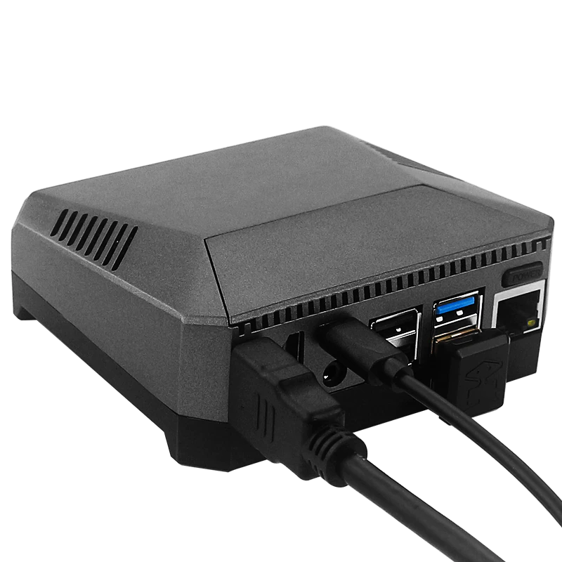 La funda Argon ONE M.2 eleva el ante al proporcionar (1) dos puertos HDMI de tamaño completo, (2) modos de gestión de energía que permiten el arranque automático, (3) soporte IR integrado con opciones aerodinámicas de configuración y (4) soporte SSD SATA M.2 integrado a través de los puertos USB 3 DE Raspberry Pi 4.