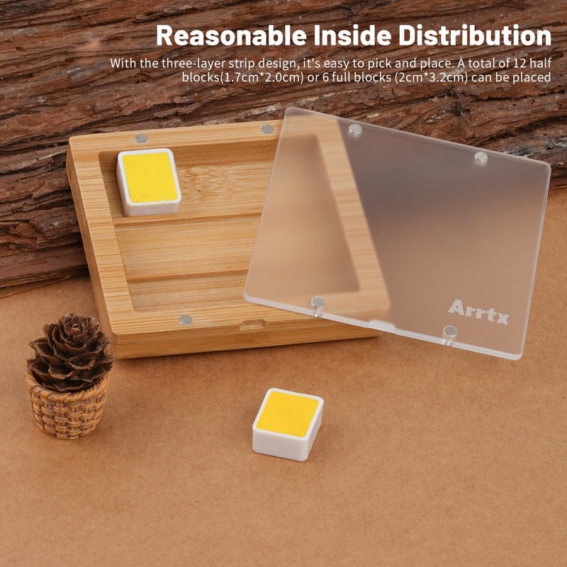 Arrtx-Caja De Paleta De Acuarela Bambú Portátil, Diseño Cubierta Deslizante Magnética Única, Paleta Pigmentos, Bandeja Almacenamiento De Pintura
