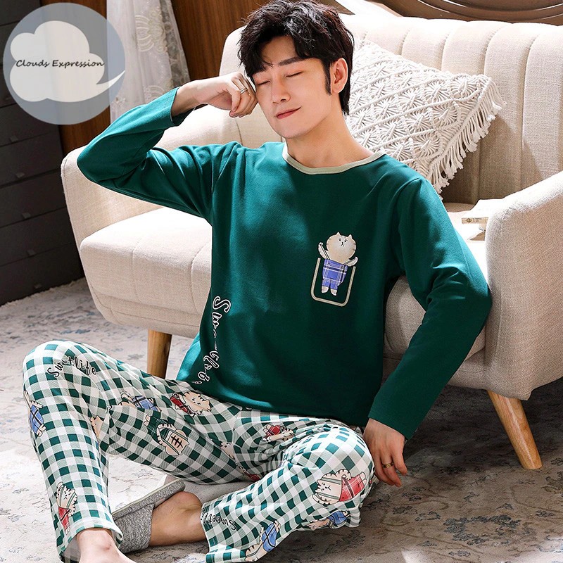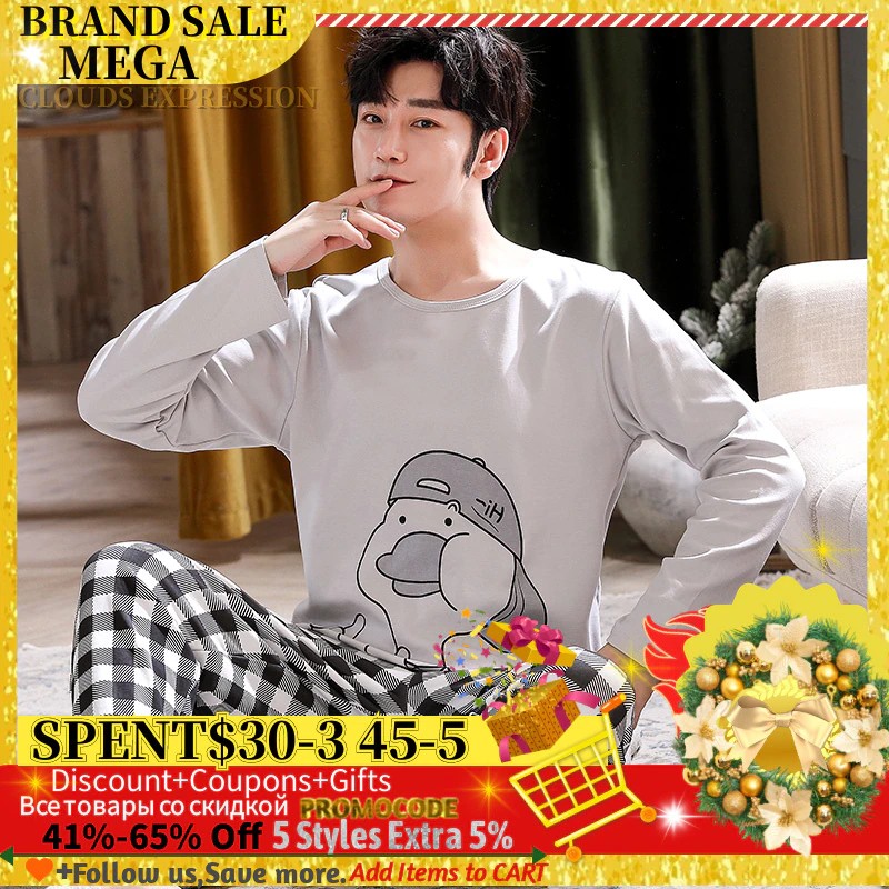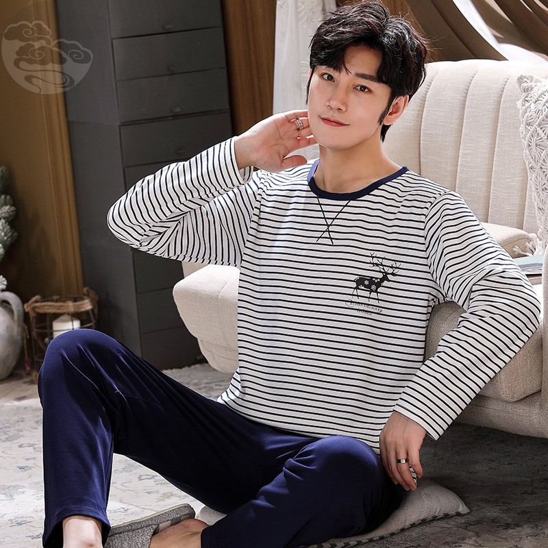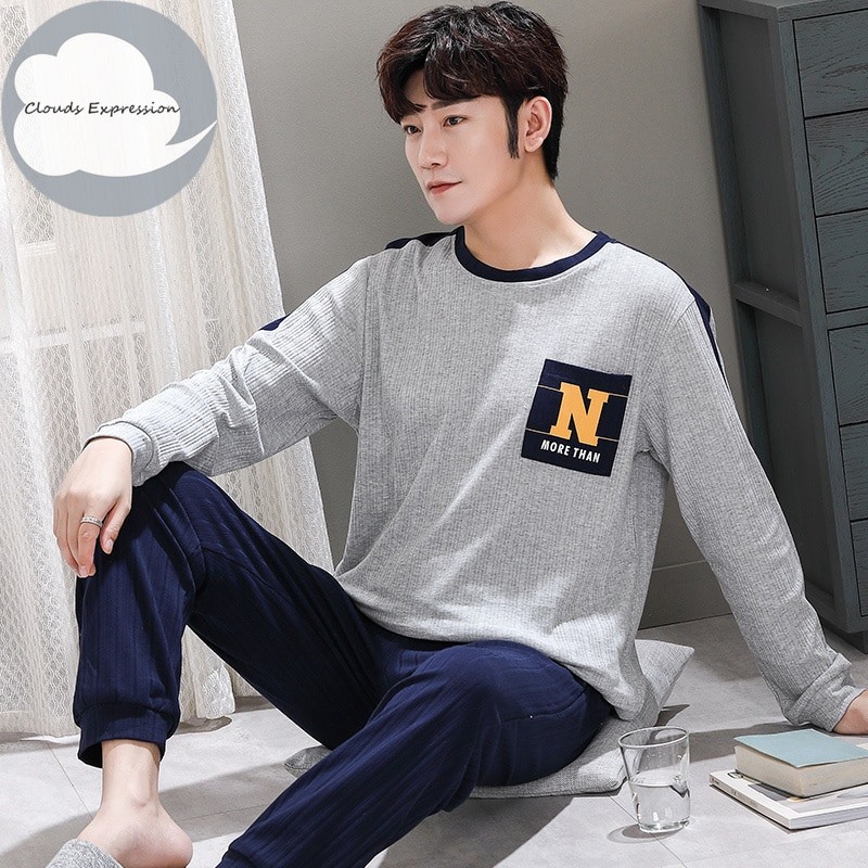 Pijamas De Algodón Para Hombre, Ropa De Dormir A Rayas Con Letras, Conjuntos Pijama Dibujos Animados Pijamas Informales De Talla Grande 4Xl, Otoño E Invierno