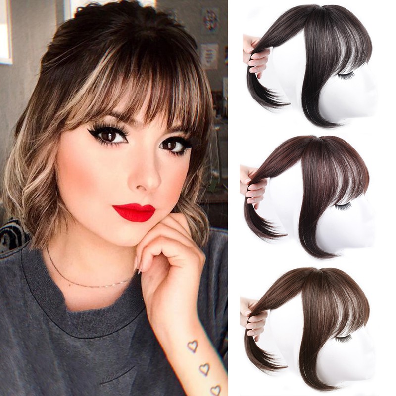 Clip Negro/Marrón Claro En Flequillo, Accesorios Para El Cabello, Flequillo Falso Sintético Clip En Extensiones De Cabello, Piezas De Cabello
