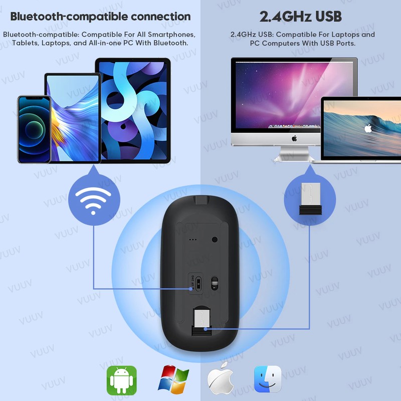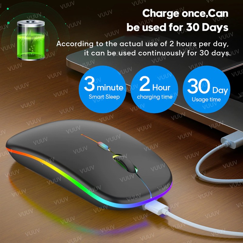 Bluetooth Wireless Mouse For Computer Pc Laptop Ipad Tablet Macbook With Rgb Backlight Ergonomic Silent Rechargeable Usb Mouse