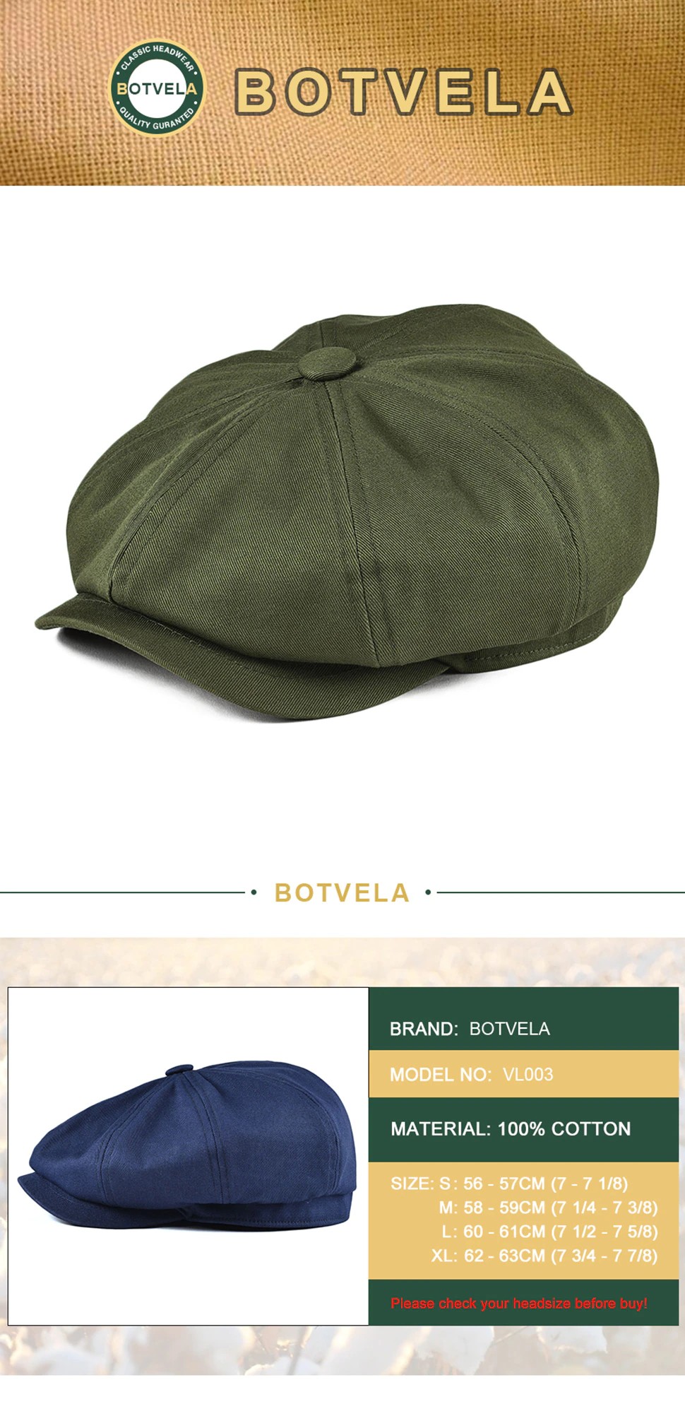 Botvela-Gorra De Sarga De Algodón Para Hombre, Sombrero Panadero 8 Paneles, Sombreros Retro Gatsby Gorra Informal Marca, Boina De Manzana