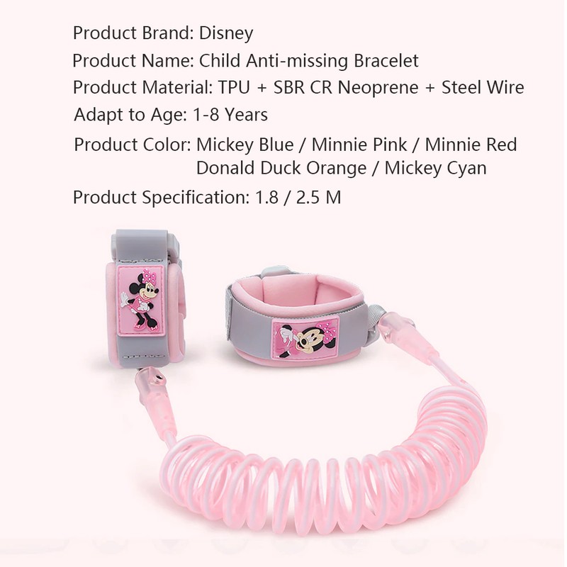 Pulsera antipérdida para bebé de la marca Disney con bloqueo, correa de arnés antipérdida, correa de cuerda a prueba de cerradura, cinturón para niños pequeños, niños de 1,8 m