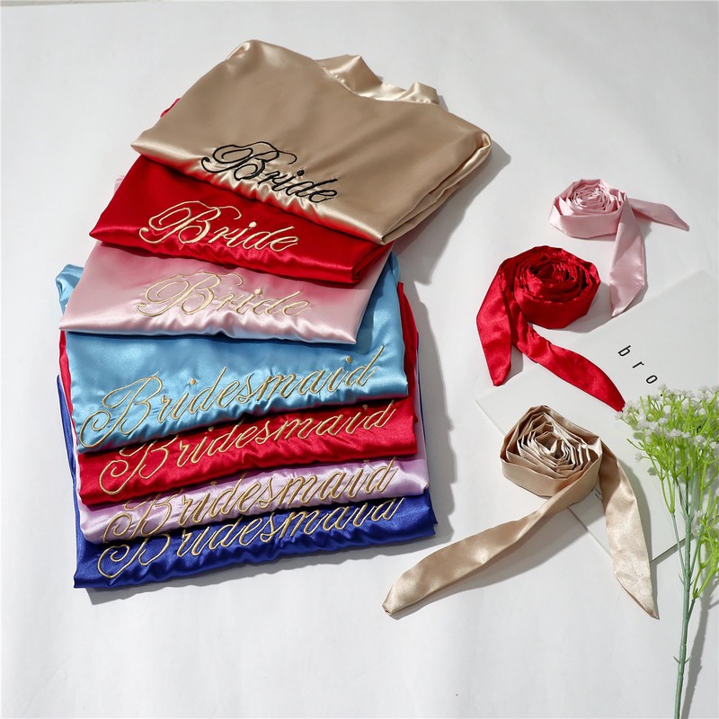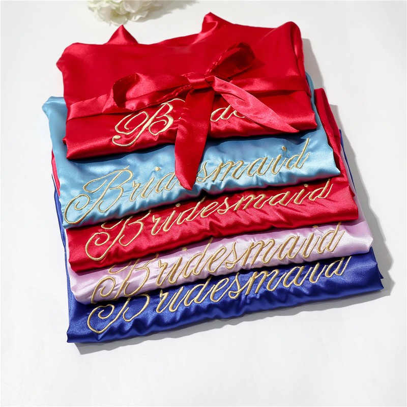 Bata De Boda Para Dama De Honor, Kimono Bordado, Bata Baño Camisón Corto Informal Satén Para Mujer, Ropa De Dormir Sexy