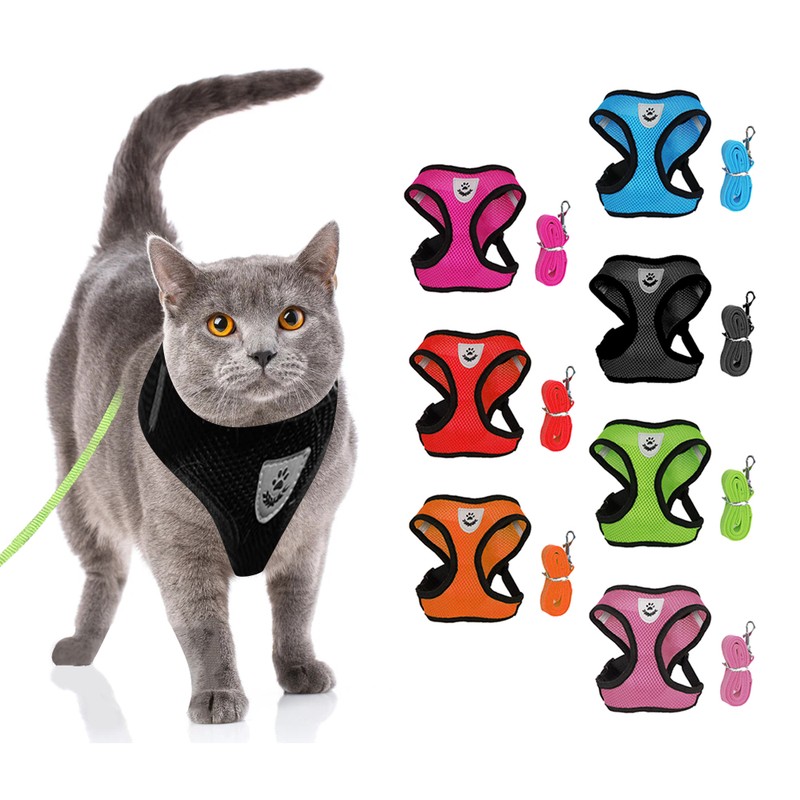 Arnés ajustable suave y transpirable para gatos, chaleco de malla de nailon para perros, Collar para cachorros, gato, mascota, correa para el pecho