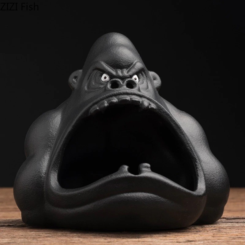 Cenicero de animales de dibujos animados de cerámica orangután anticenizas coche Cenicero de gran capacidad sala de estar decoración de oficina regalo