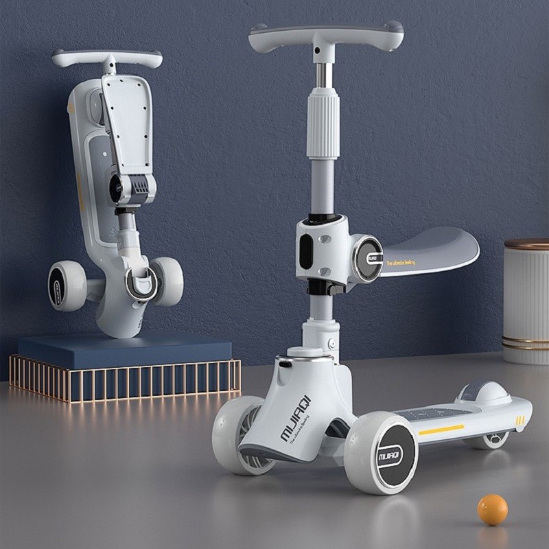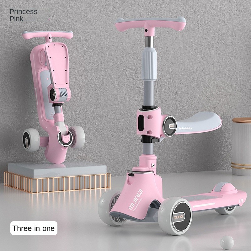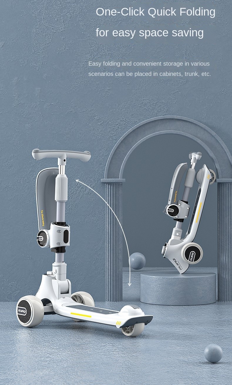 Lazykid-Patinete Plegable Para Niños De 1 A 12 Años, Bicicleta De Equilibrio Brillante, Monopatín Altura Ajustable 2 En 1 Cochecito De Bebé, Regalo Para Bebé