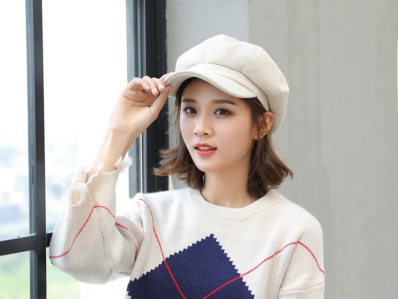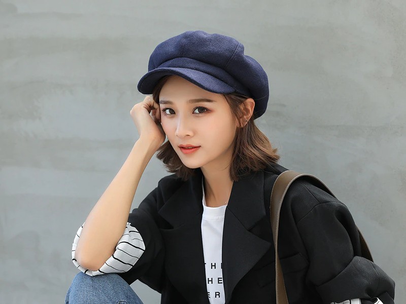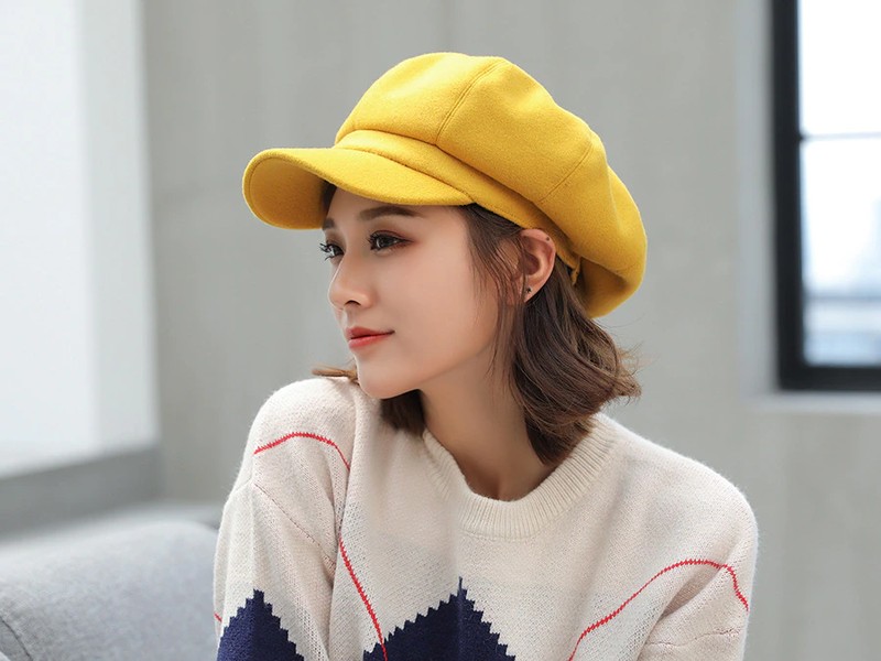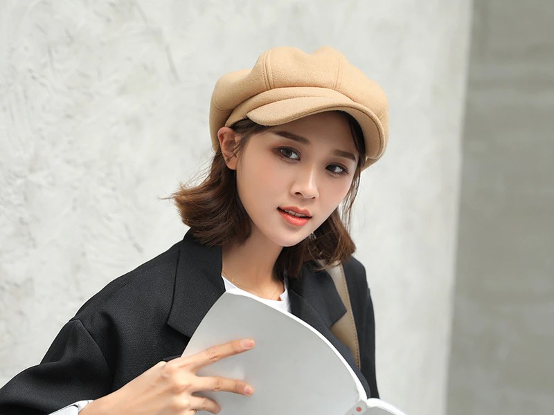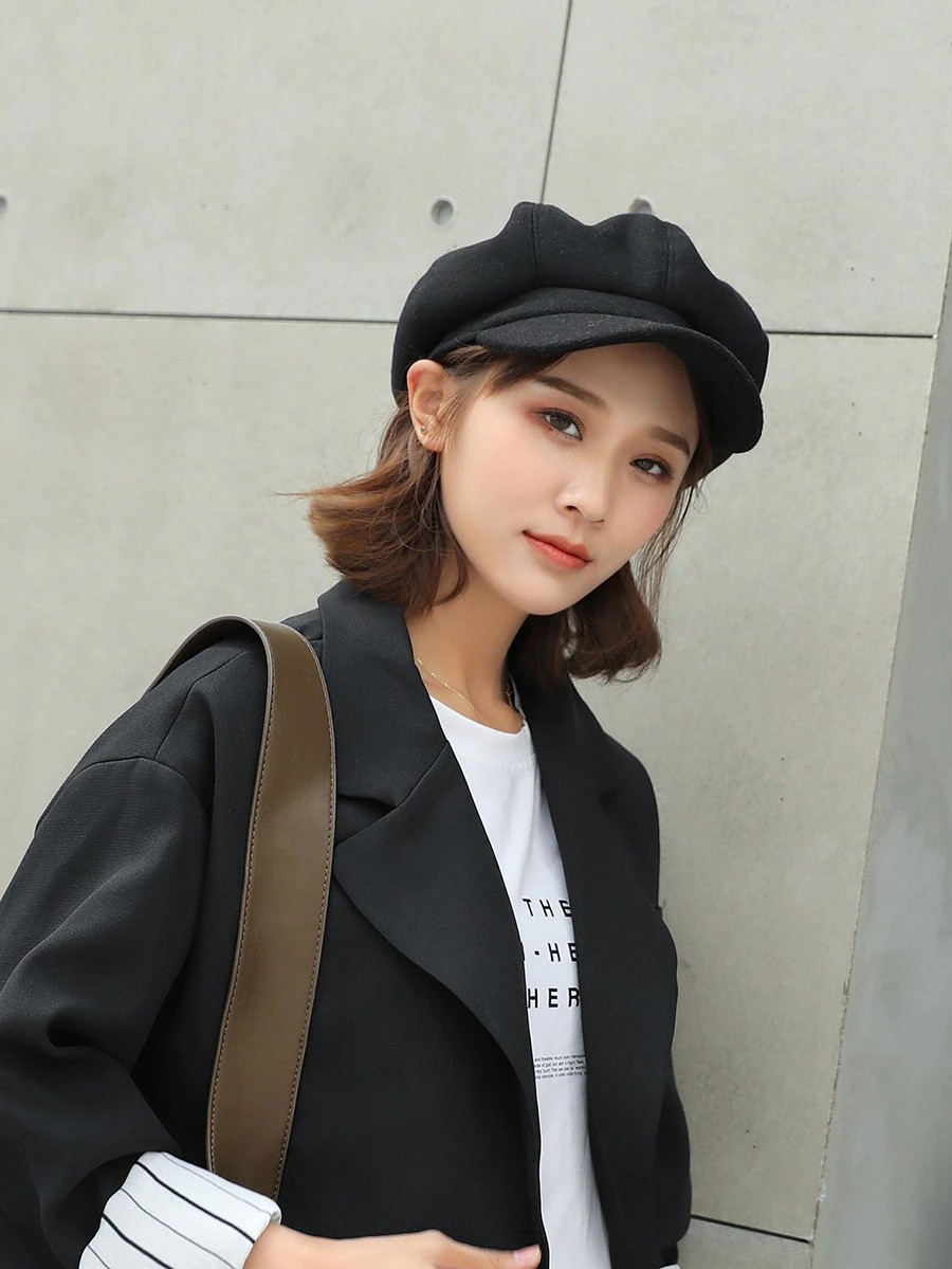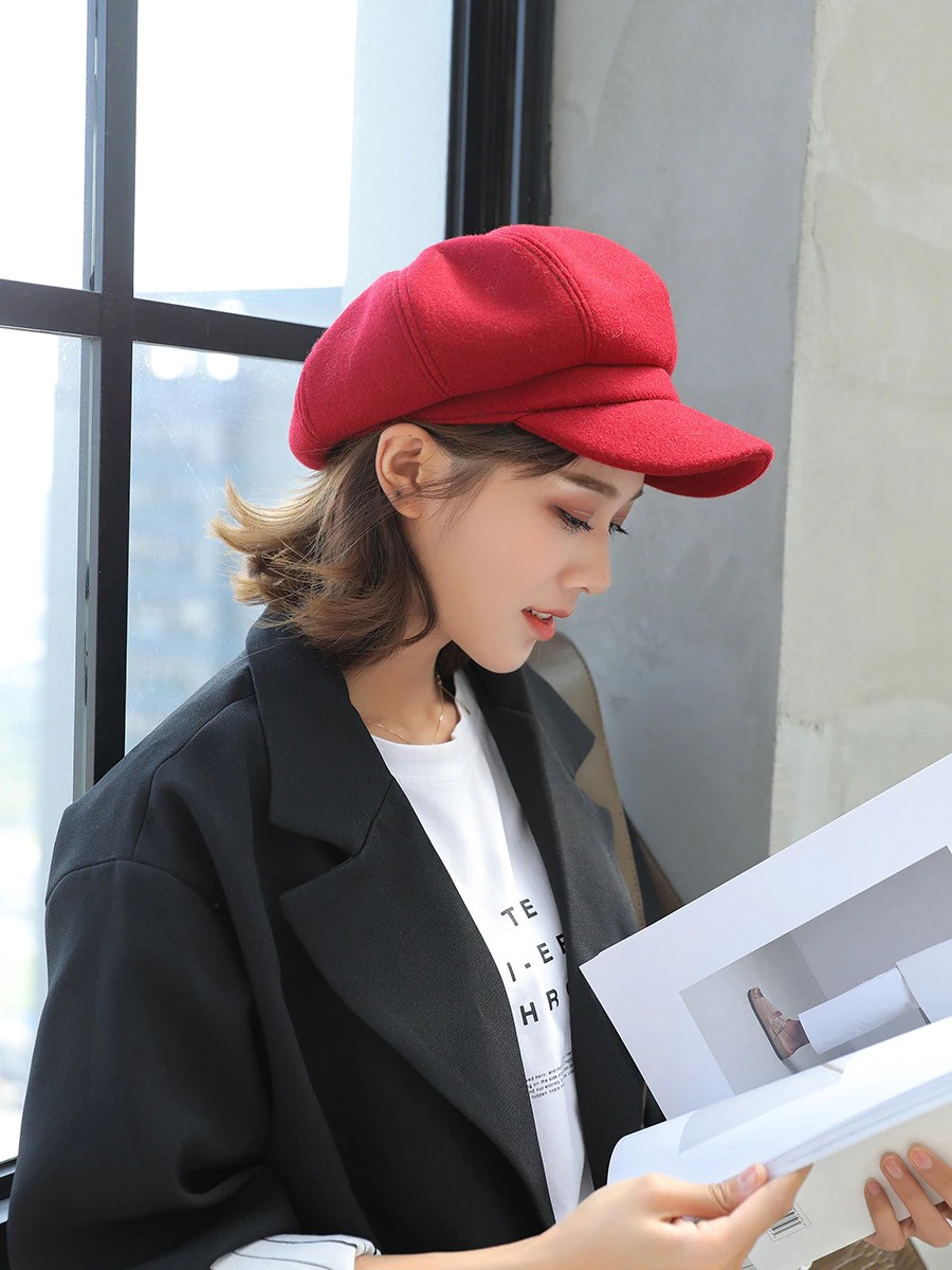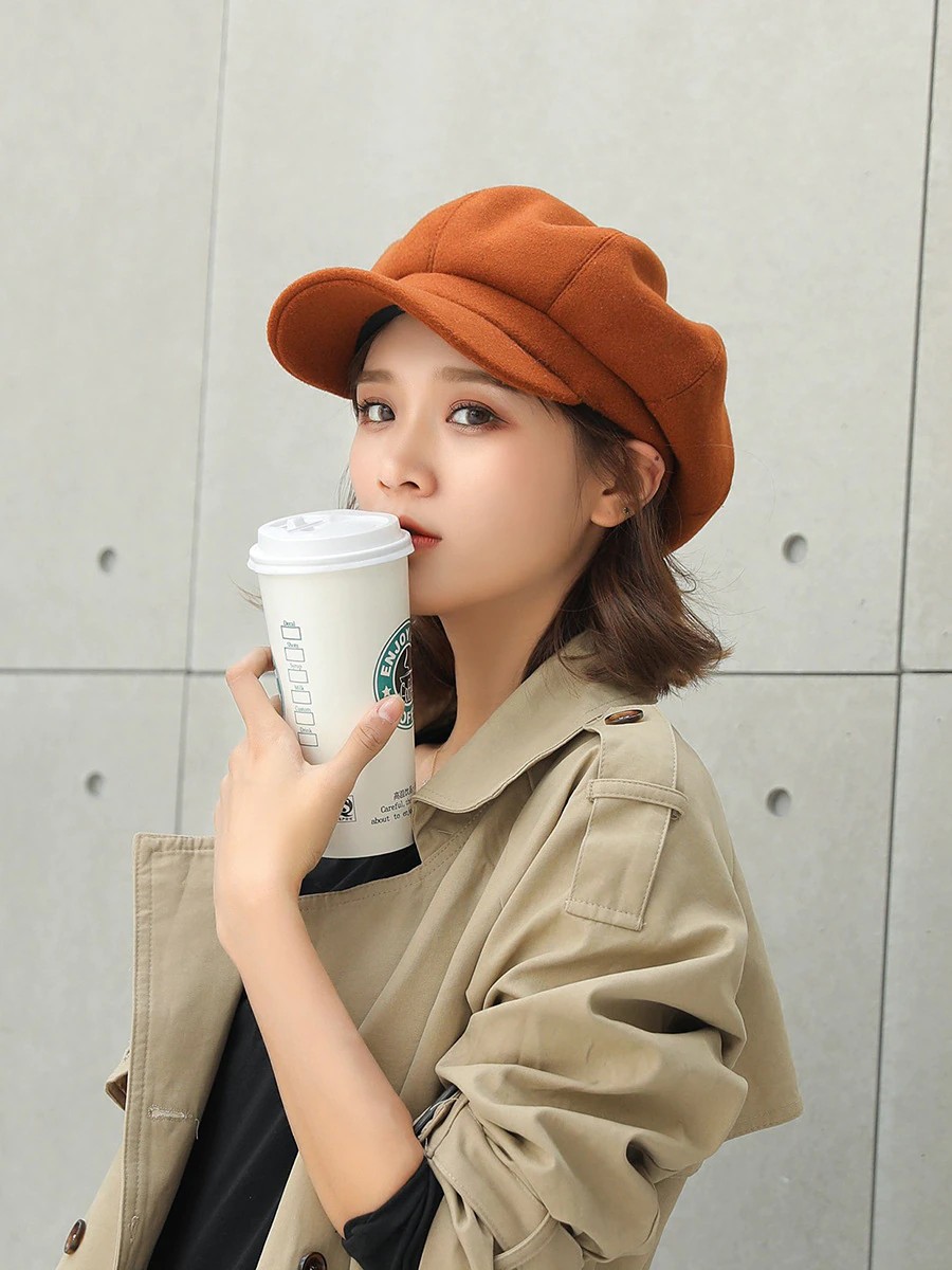 Nombre del artículo: COKK sombreros de Otoño Invierno para mujer gorra octogonal lisa Lisa sólida para hombre y mujer gorro de lana informal de invierno boina de pintor para mujer