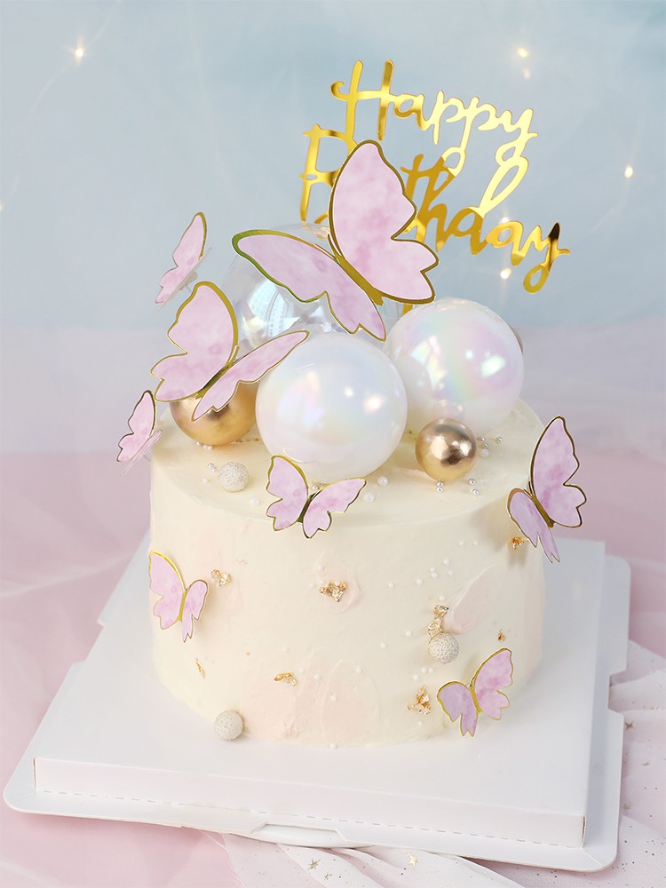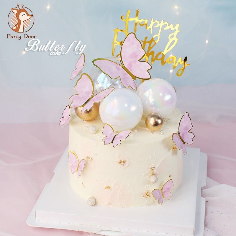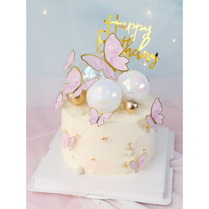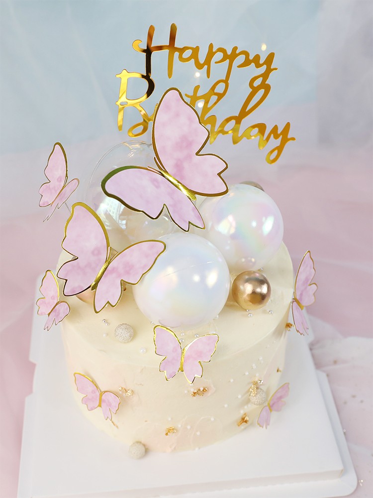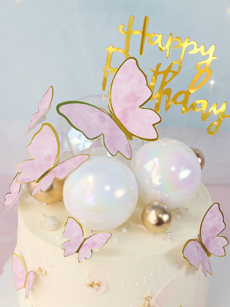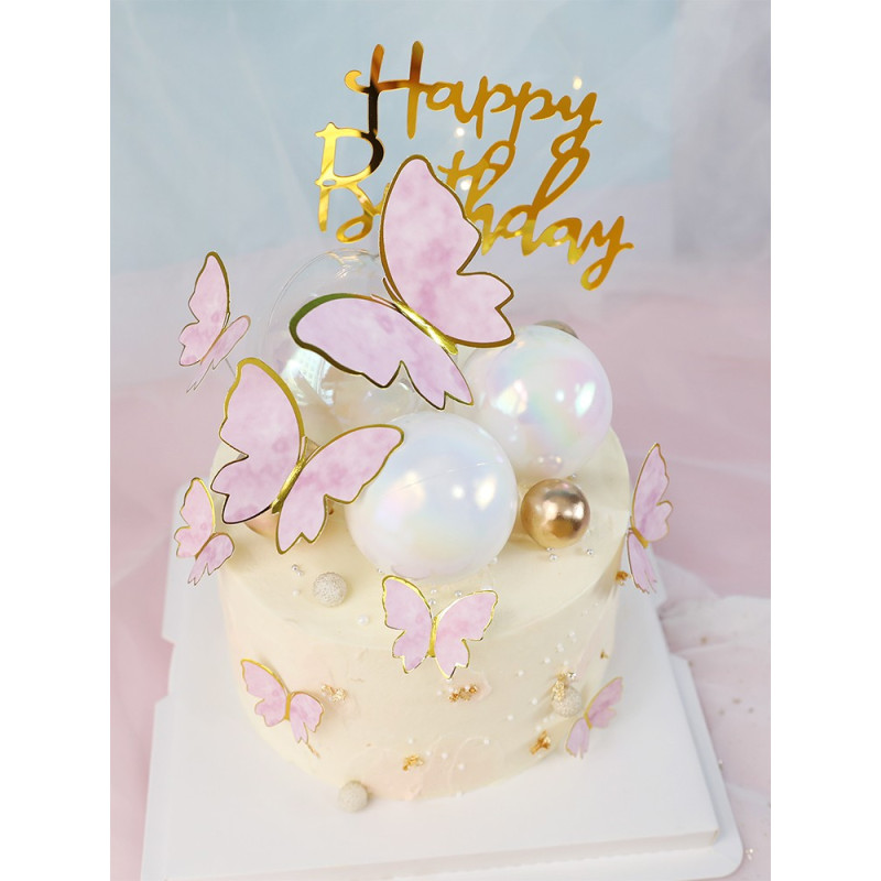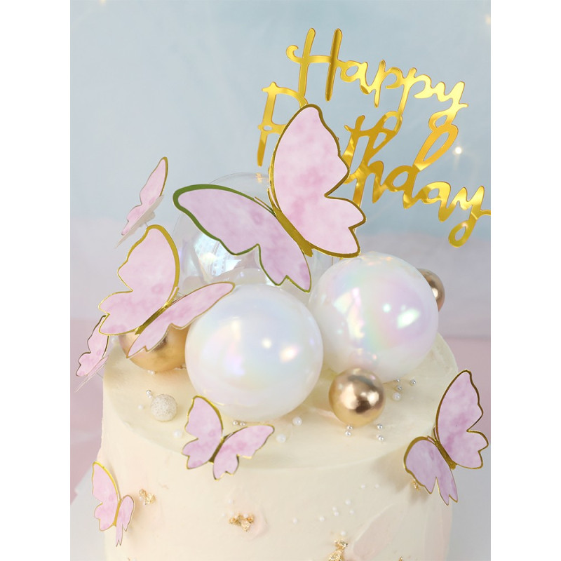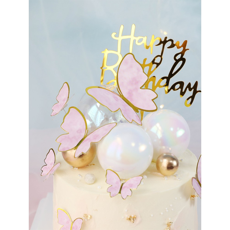 Biling-Decoración De Pastel De Feliz Cumpleaños, Decoración Postre Novia Para Fiesta Cumpleaños, Regalos Encantadores, Mariposa De Oro Rosa Colorido