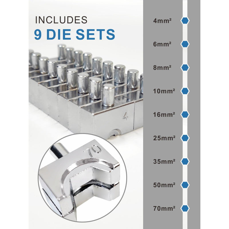 Crimpadora Hidráulica Corrugadora De Terminal De Cable, 8 Toneladas, 4Mm Cuadrados A 70Mm Cuadrados, Kit Herramientas Cable De Terminal Eléctrico Con 9 Troqueles