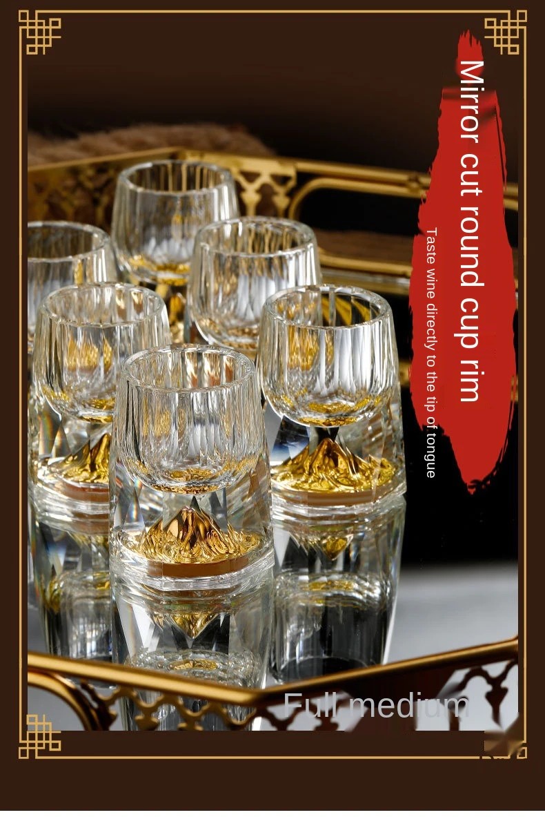 Creativo conjunto de vino de alta gama para el hogar de vidrio de cristal dorado, vidrio de Vodka, artefacto de regalo de vacaciones, copa de vino de doble vidrio