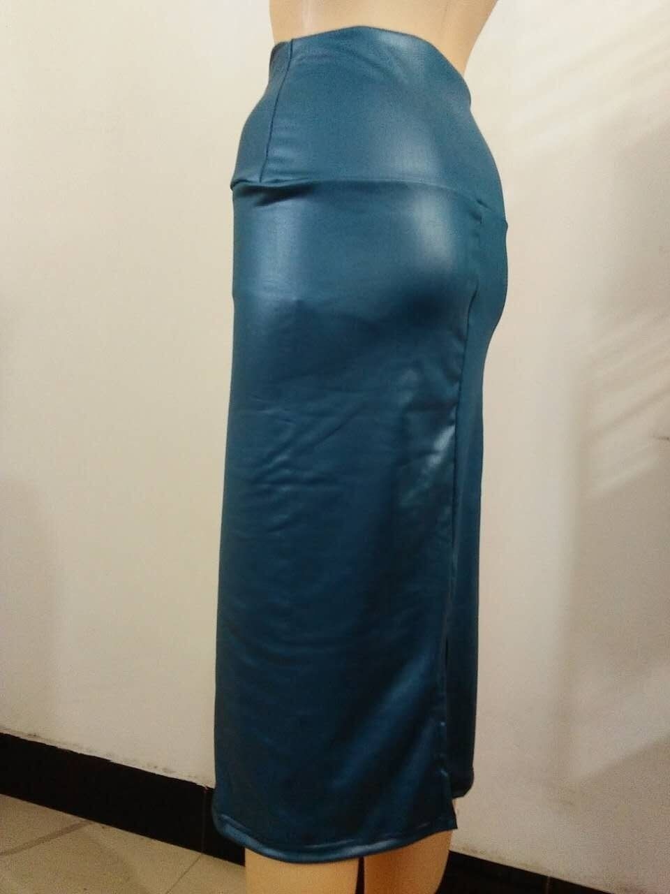 Cuhakci-Falda De Cuero Sintético Con Abertura En La Espalda Para Mujer, Falda Sexy Negra, Ajustada De Cintura Alta, Estilo Vintage