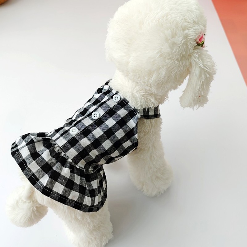 Falda a cuadros para mascotas, material de algodón, tela cómoda. El diseño a cuadros aumenta la sensación de moda de la falda. La hebilla en la parte posterior hace que sea más conveniente para las mascotas.