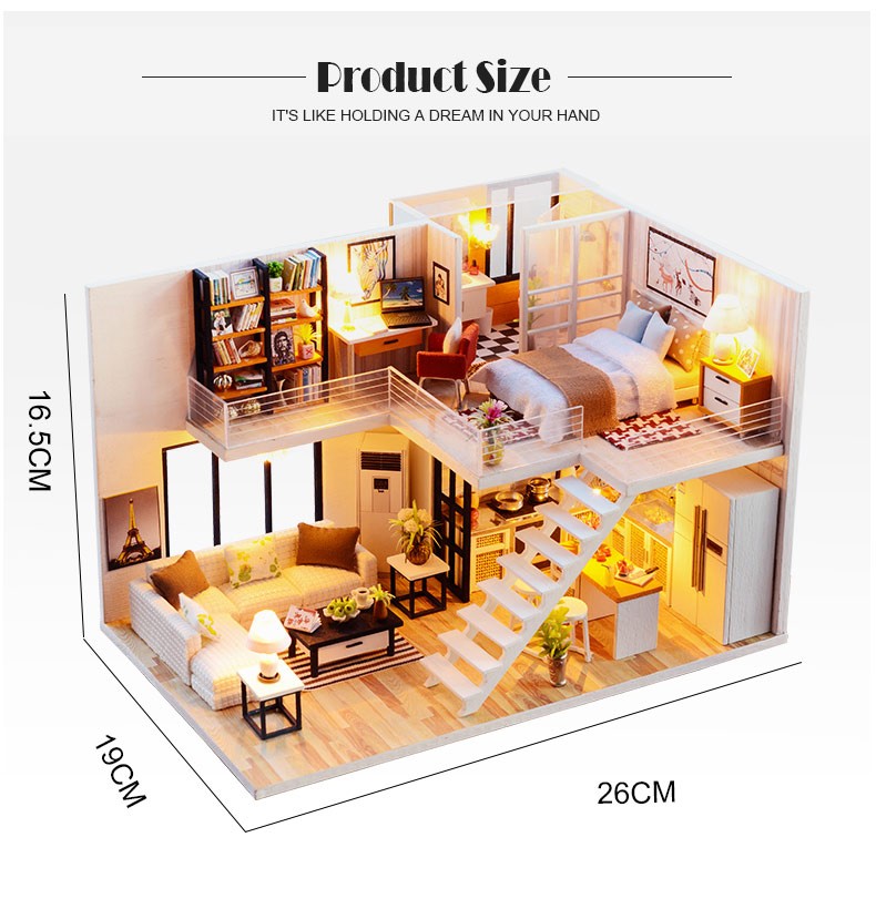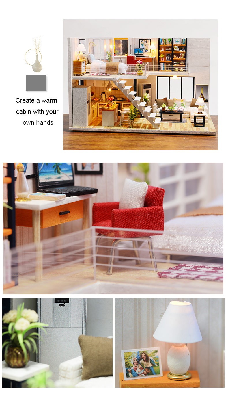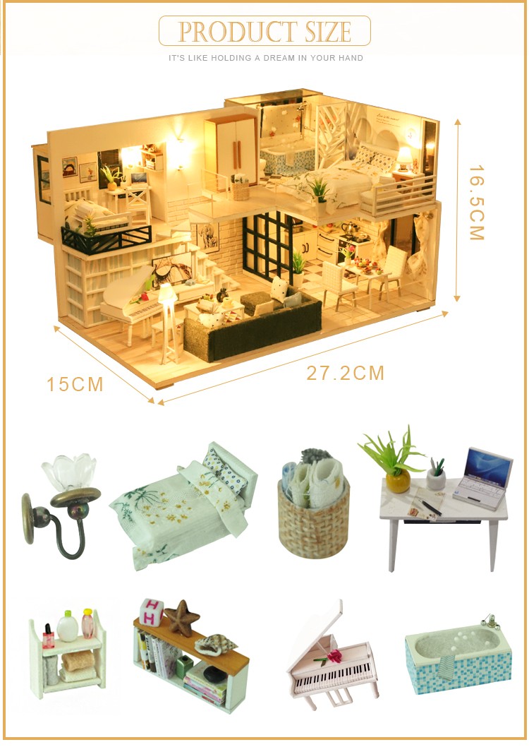 Mini casa de bricolaje para muñecas, todos los muebles son igual a la imagen mostrada, viene con todas las piezas, necesita montaje.