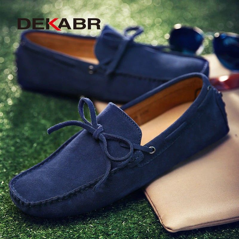 Dekabr-Zapatos Informales De Piel Auténtica Para Hombre, Mocasines De Marca De Lujo, Transpirables Sin Cordones Para Conducir Color Negro, Talla 35-49