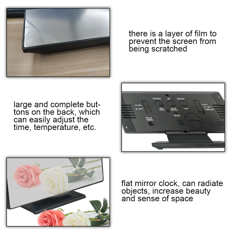 1.Visualización de la Hora:Puede mostrar la hora a través de un reloj de 12 horas o un reloj de 24 horas, y puede mostrar la fecha a través de mes, día y año (año 2015-2018).