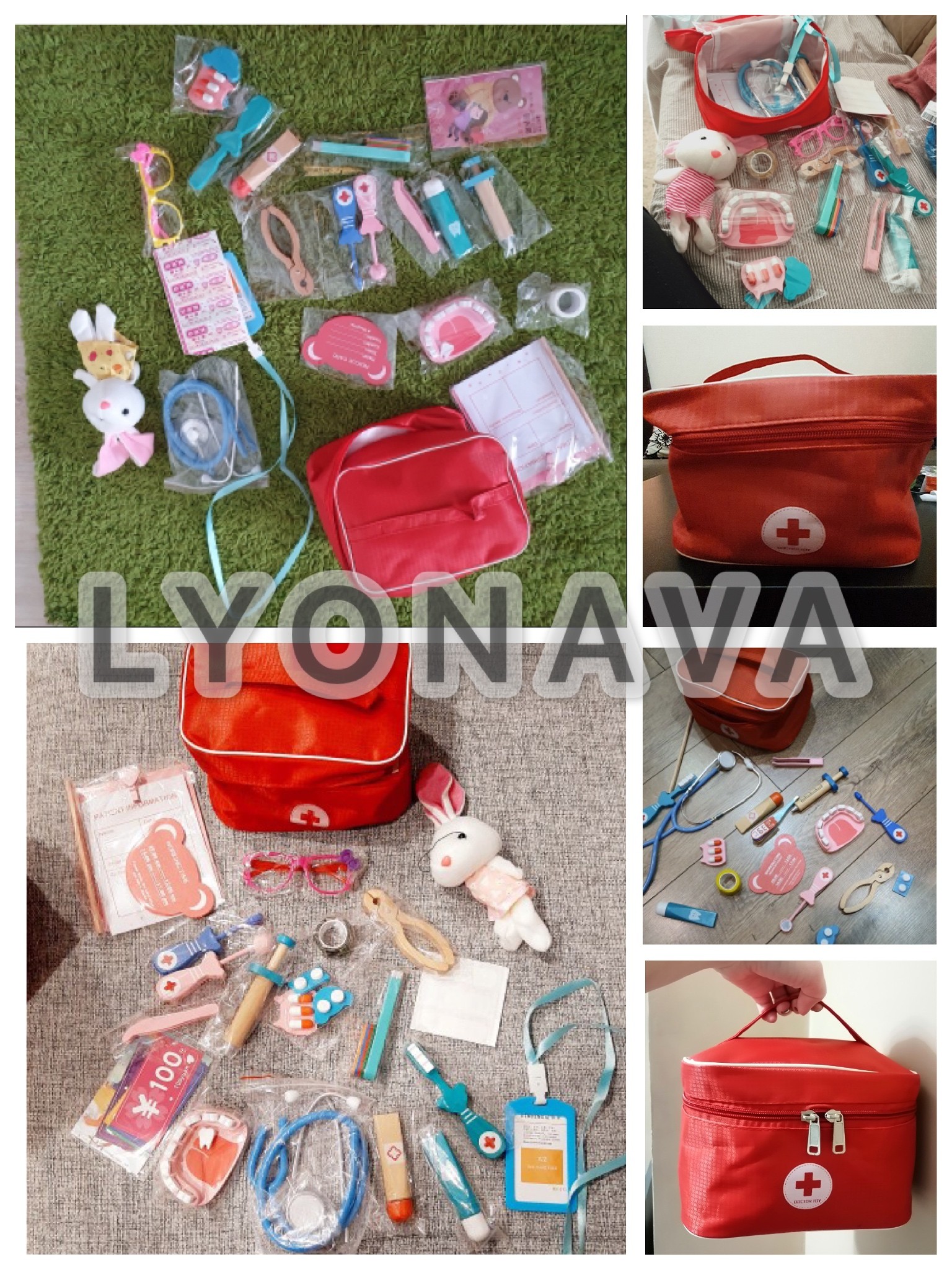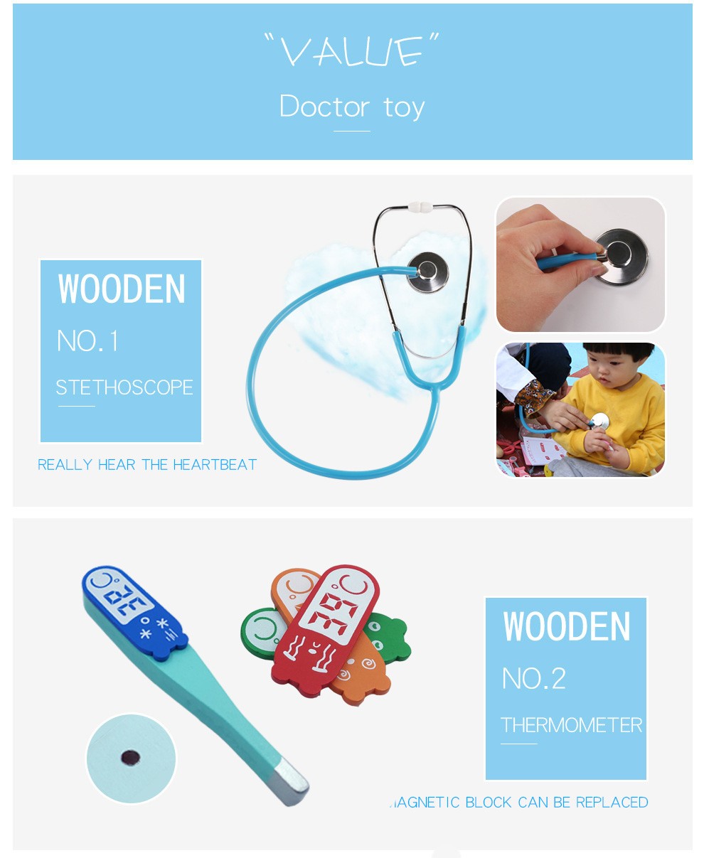 Juego de juguetes para niños, juego de médicos para niños, juegos para niñas, niños, simulación, juego de madera, caja de medicina médica roja, bolsa de tela