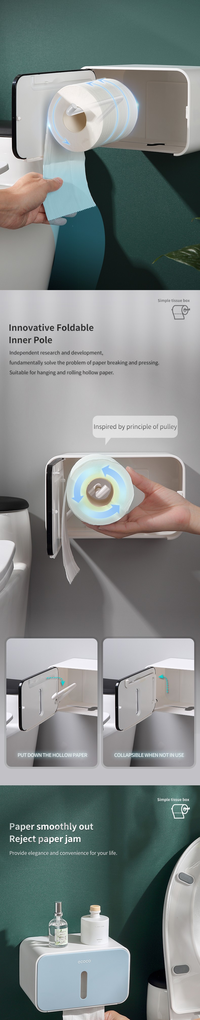 Ecoco-Caja De Toallas De Papel Impermeable, Estante Colocación Artículos Montado En La Pared, Sin Perforación Diseño Simple Creativo, Accesorios De Baño Para El Hogar