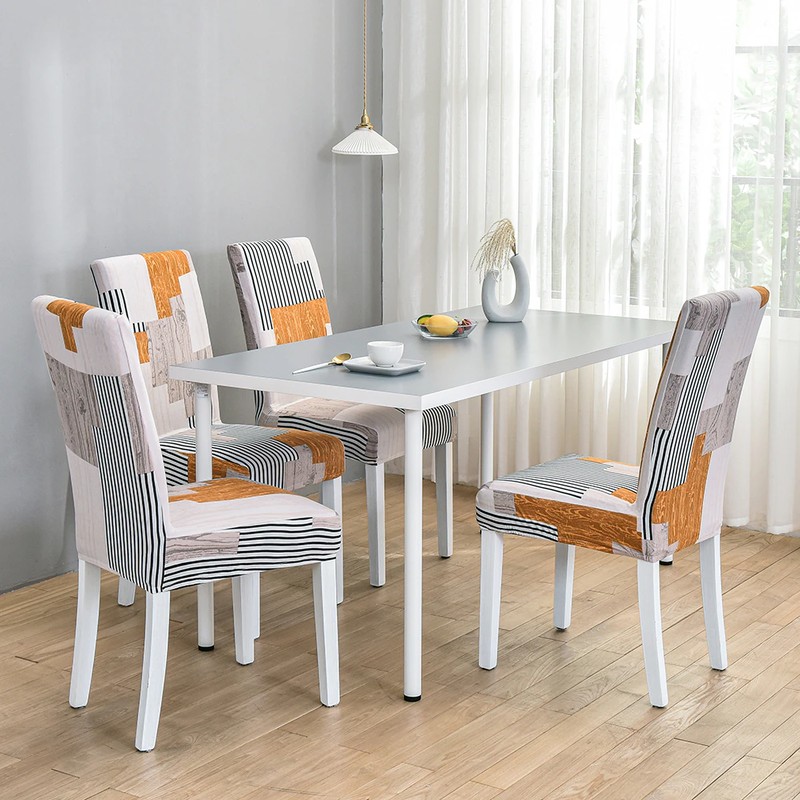 Funda elástica de licra para silla de comedor, cobertor de asiento antisuciedad y salpicaduras de poliéster, funda moderna con estampado fácil de extraer y poner, adecuada para sillas de comedor y banquetes