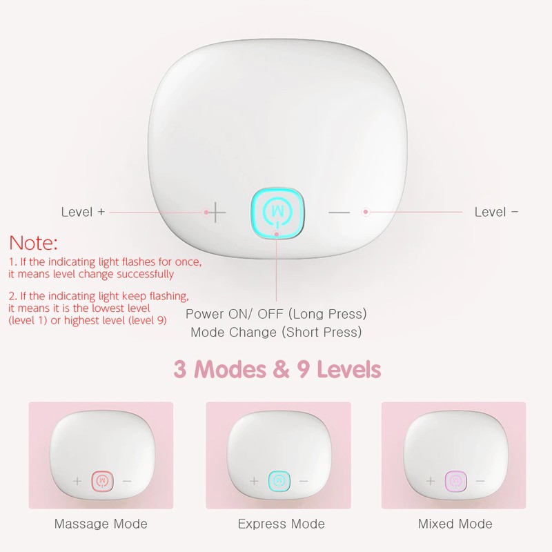 Dispositivo todo en uno. 3 modos (masaje, express, mixto), cada modo tiene 9 niveles ajustables, Elija el nivel más cómodo.