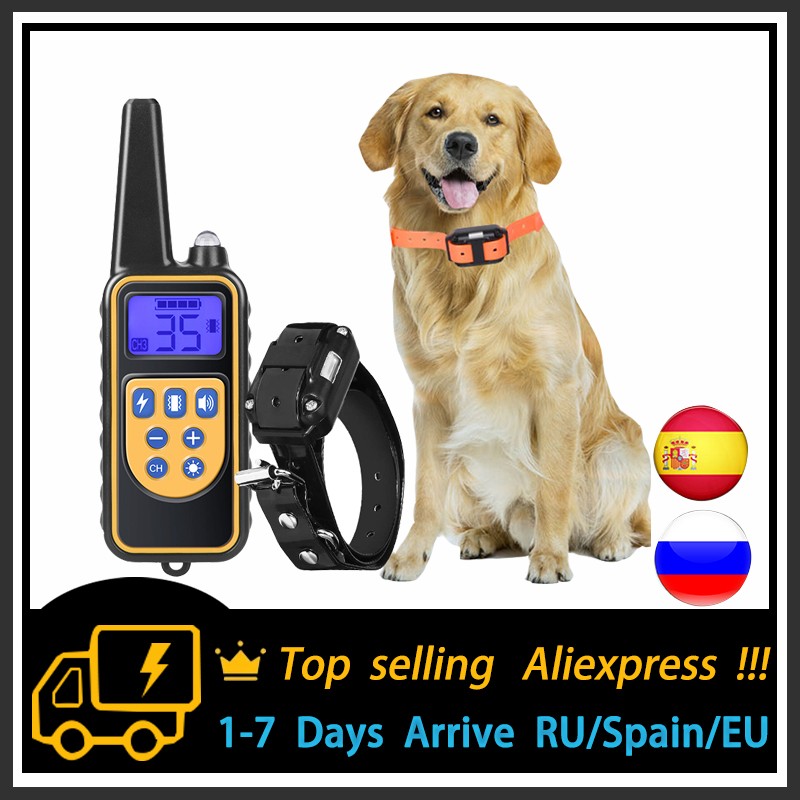 Collar Eléctrico De Entrenamiento Para Perros, Dispositivo Con Control Remoto, Vibración Recargable Impermeable Con Pantalla Lcd Adecuado Para Todos Los Perros, 800M