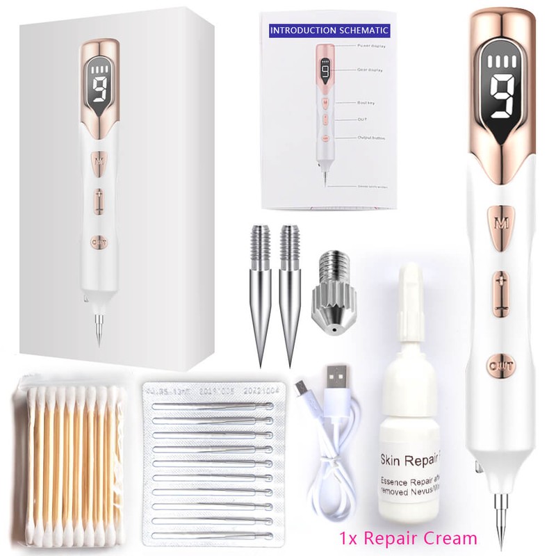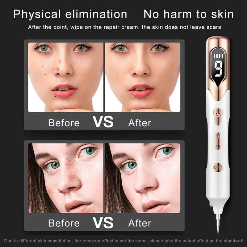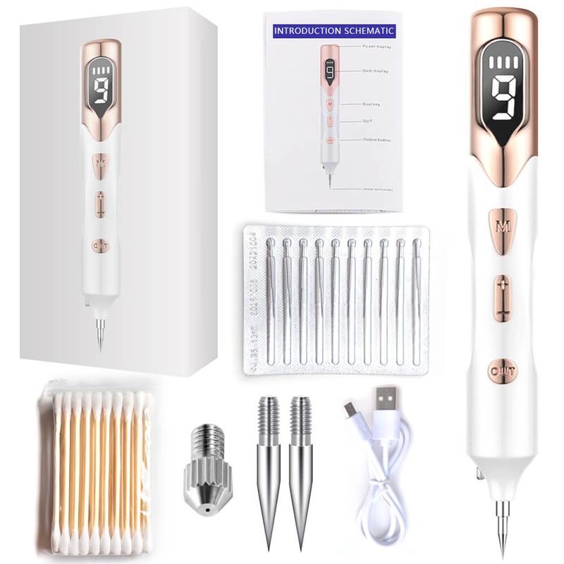 【 3 】 seguro y efectivo: este bolígrafo de eliminación de lunares está aprobado por la FDA. Equipado con tecnología de ionización de carbono y control de microordenador, este bolígrafo de belleza está equipado con 9 niveles de resistencia ajustables de salida de potencia de barrido, tratamiento inteligente y fiable.