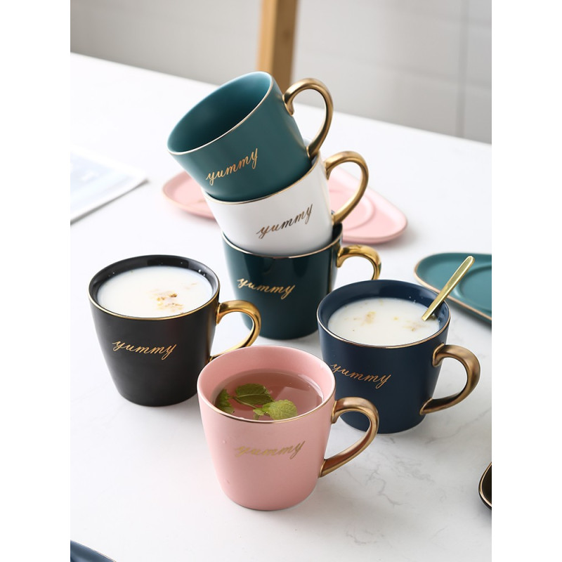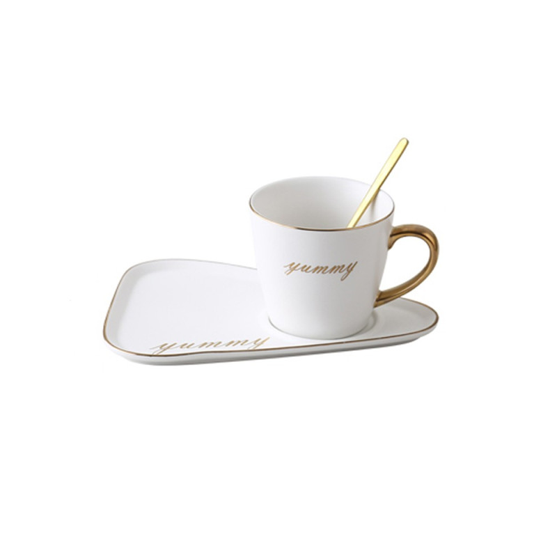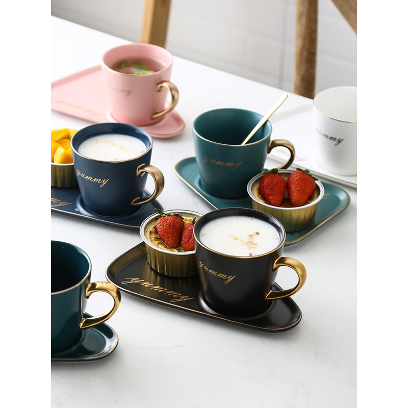 Juego de taza y platillo de café de cerámica de lujo europeo para oficina, tazas de té con leche, regalos para parejas de cumpleaños, taza de amigos con caja de regalo de cuchara