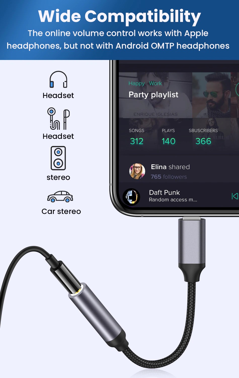 ● ¡Solo adecuado para auriculares ordinarios con cable!