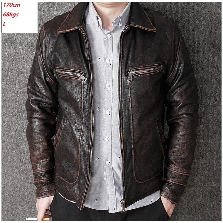 Abrigo De Piel De Vaca Para Hombre, Chaqueta Gruesa Cuero Genuino Calidad Natural, Ropa Cuero De Estilo Vintage Venta Gratis, Nuevo