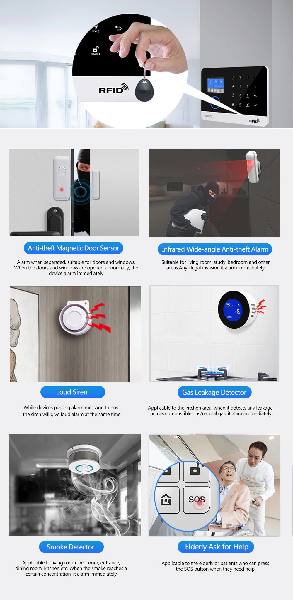 1. Los hosts de alarma para todos los PG-103 de este enlace son todas las versiones GPRS WIFI GSM(2G). Control de la aplicación Tuya Smart Life.