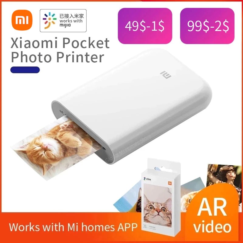 Xiaomi-Impresora De Bolsillo Mijia Ar Para Fotos, Dispositivo Mini De Impresión Portátil Versión Global, 300Dpi Batería 500Mah, Con Opción De Compartir Imágenes
