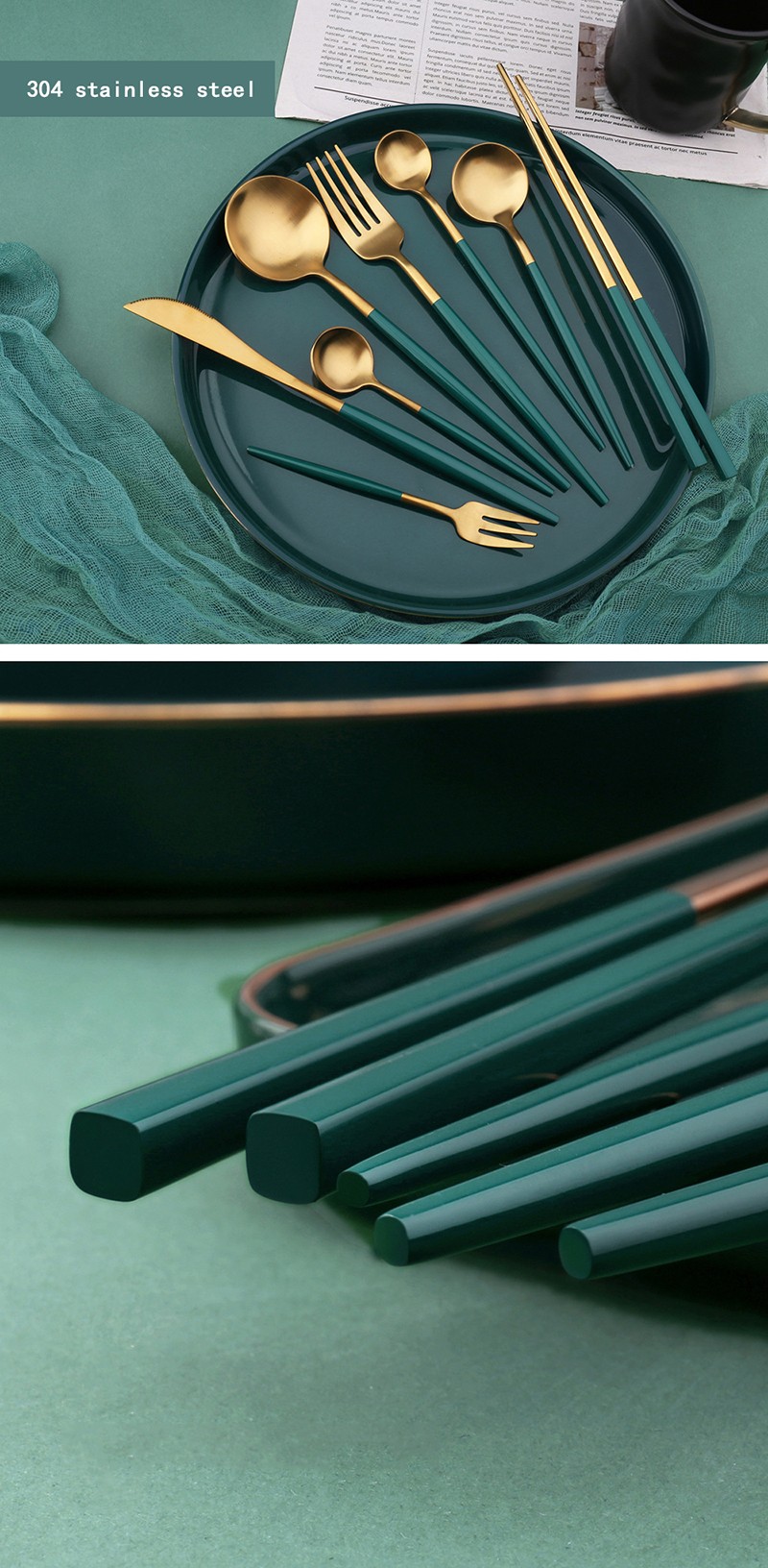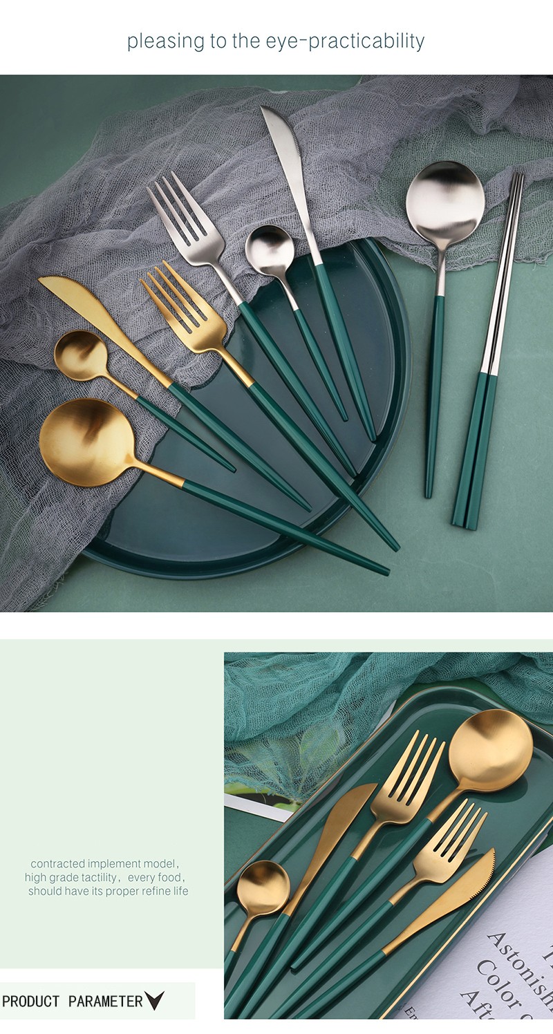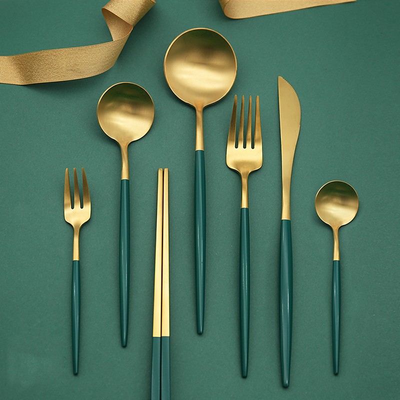 Cuchara De Acero Inoxidable De Estilo Nórdico, Tenedor, Cuchillo Palillo Cuchillos Carne Cuchara Sopa Cuchillo De Mesa Para Cocina, Color Oro Verde