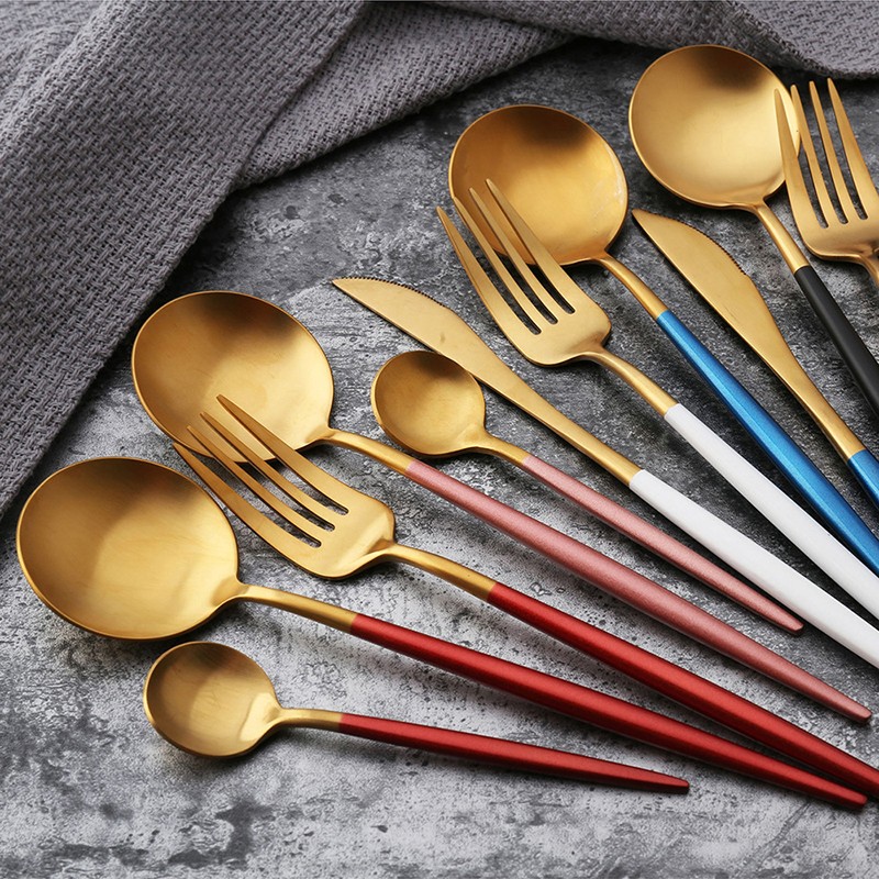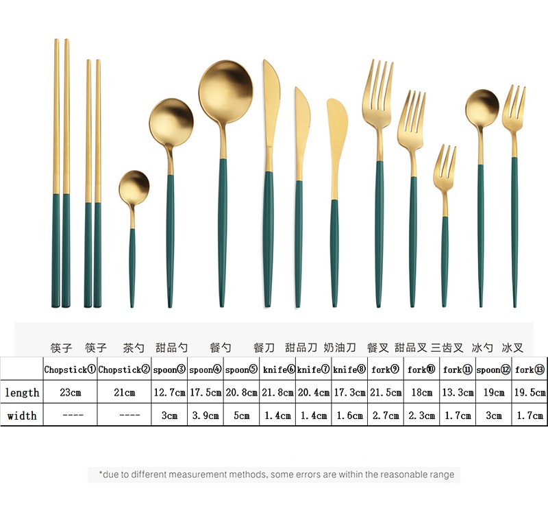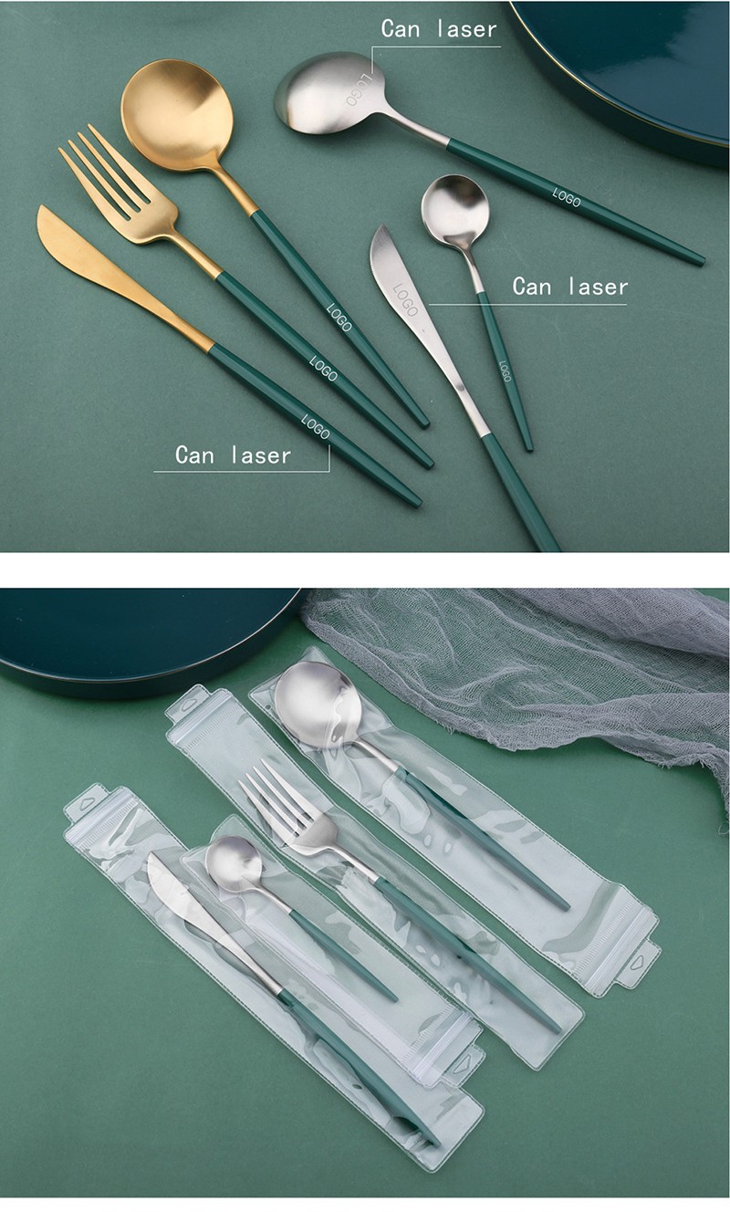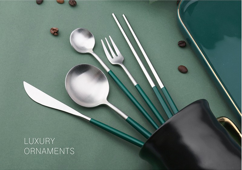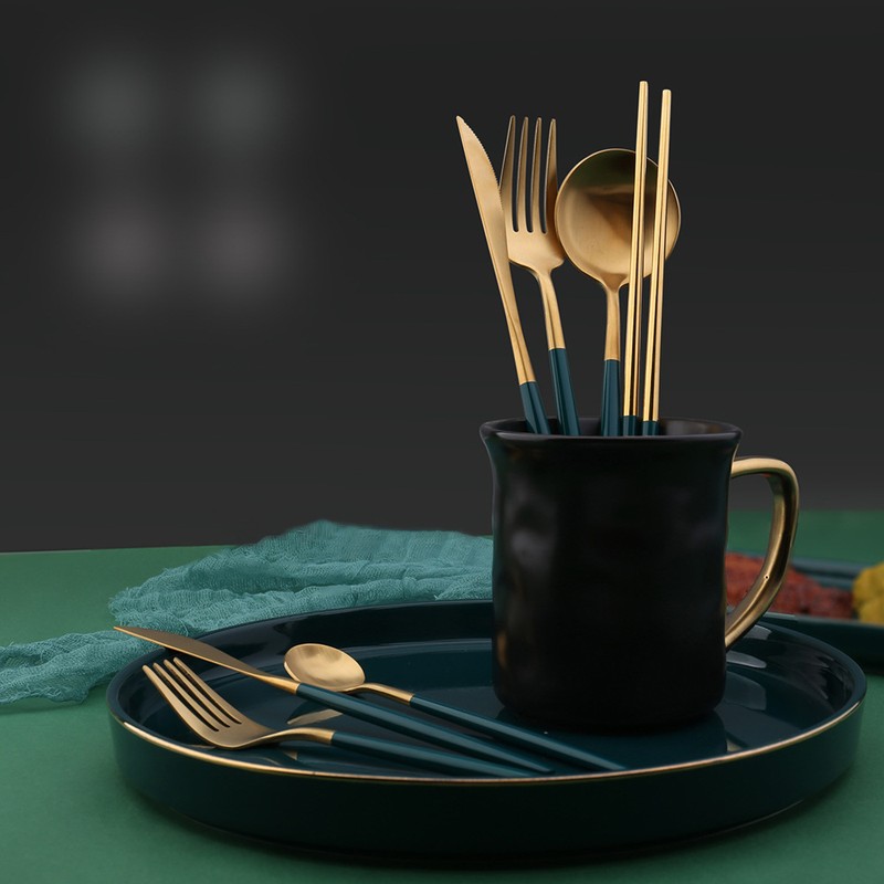 Cuchara De Acero Inoxidable De Estilo Nórdico, Tenedor, Cuchillo Palillo Cuchillos Carne Cuchara Sopa Cuchillo De Mesa Para Cocina, Color Oro Verde