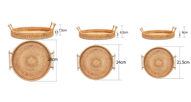 Bandeja De Ratán Para Pan, Canasta De Mimbre Con Mango Madera Redondo, Tejida A Mano Plato Comida Y Pastel Fruta, Servicio De Cena