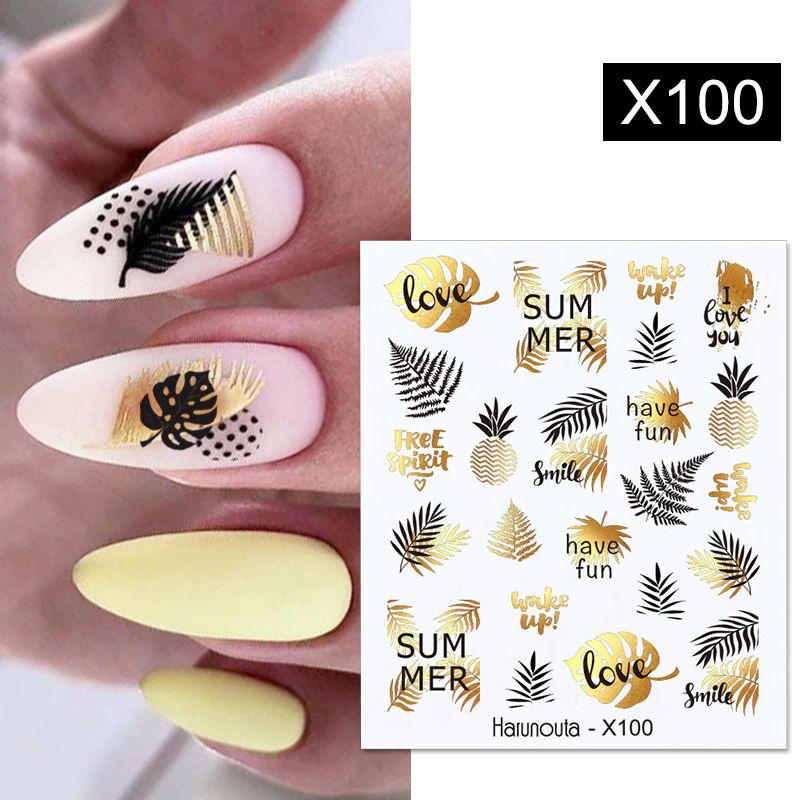 Harunouta-Calcomanía De Agua Con Temática Verde Simple Para Manicura, Pegatinas De Flores, Hojas Árbol Deslizador Verano, Para Decoración De Uñas