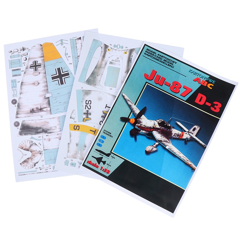 Avión Bomber De Ju-87 De Alemania, Modelo Papel 3D, Biblioteca Espacial Casa Cartón Papercraft Juguetes De Papel, 1:33