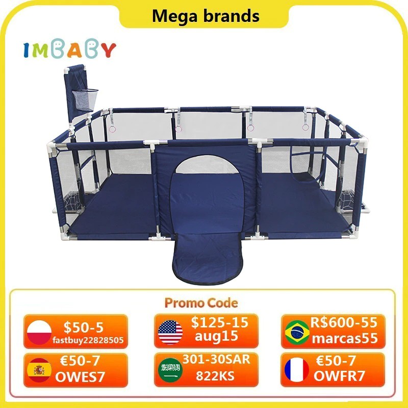 IMBABY-Corralito para bebés, cerca de juego para niños, piscina de pelotas con aro de baloncesto, patio de juegos