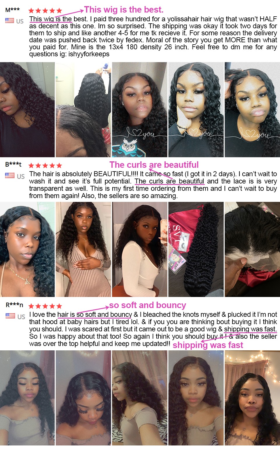 Densidad de peluca: peluca rizada profunda de 150% 180 densidad, gruesa y hinchable