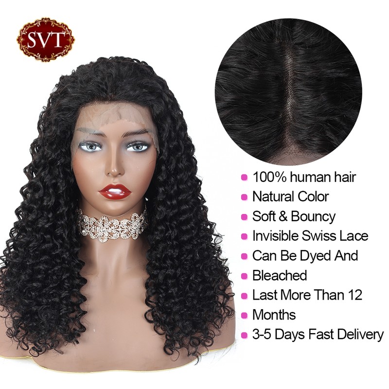 Svt-Peluca India Rizada Con Malla Frontal, Cabello Humano Para Mujeres Negras, Onda Profunda 4X4 Cierre Sin Pegamento, 13X4