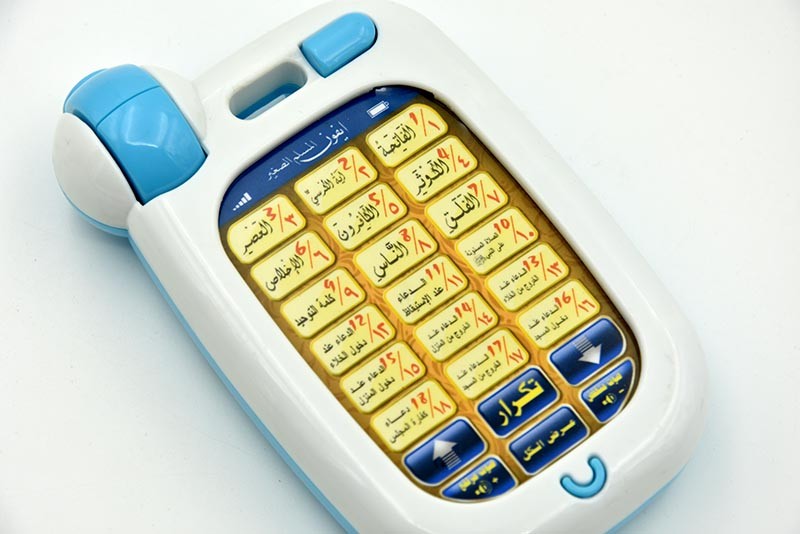 Teléfono educativo islámico de juguete para niños DUAS del Corán, juguete ligero de máquina de aprendizaje de niños musulmanes del Corán de 18 Secciones 3 años