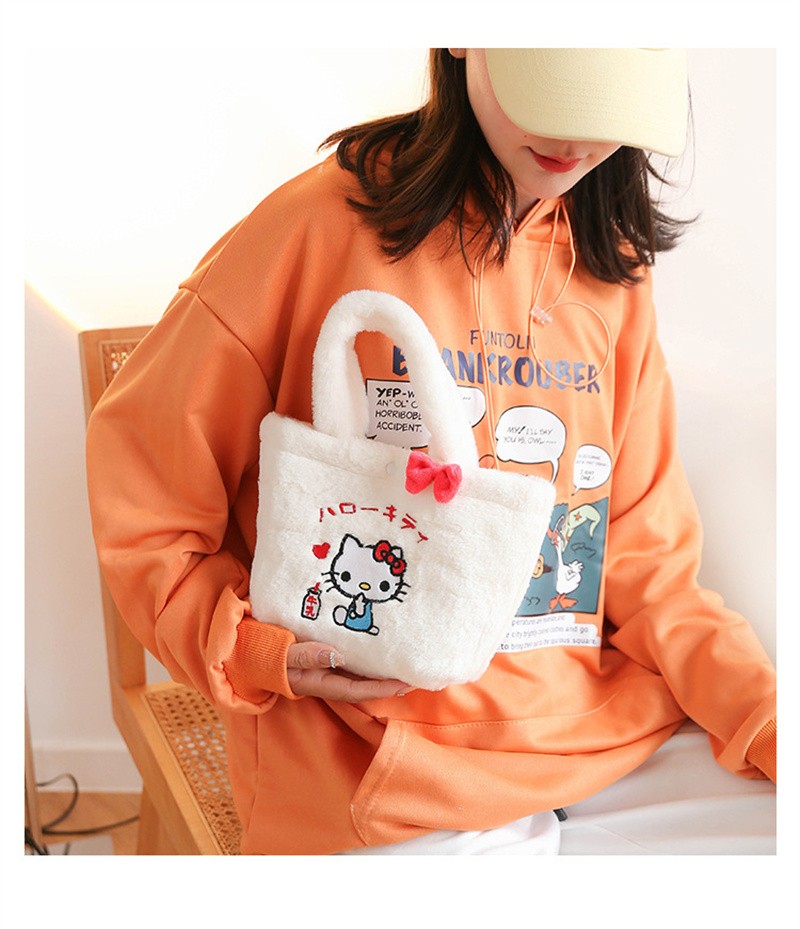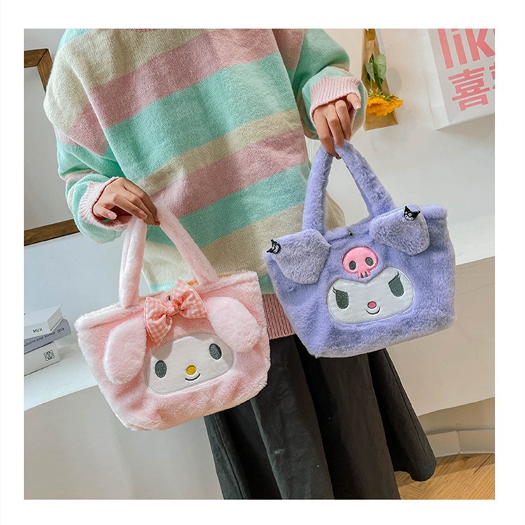 Mochila Kawaii De Felpa Para Niñas, Bolso De Mano Con Diseño De My Melody, Gato Purin Perro Kuromi Sanrio, Envío Gratis