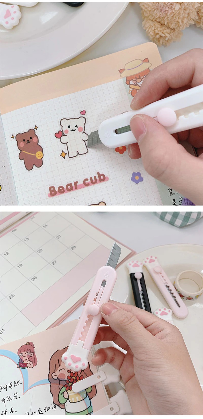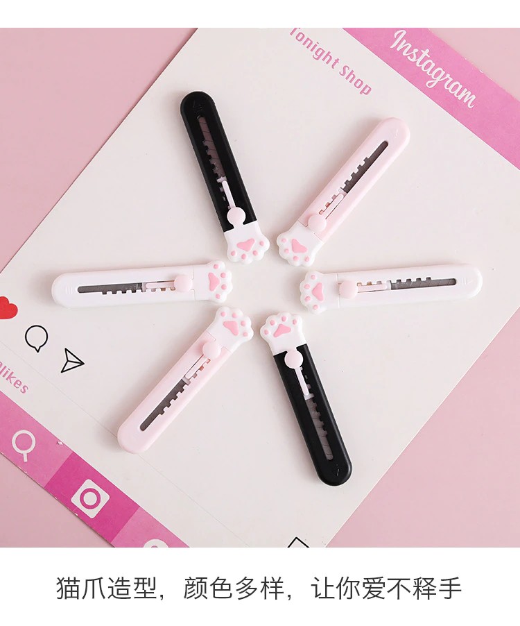 Cuchillo Kawaii Mini De Bolsillo Con Forma De Pata De Gato, Caja Para Envolver Papel, Hoja Rellenable, Papelería