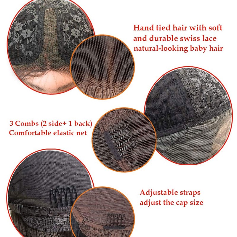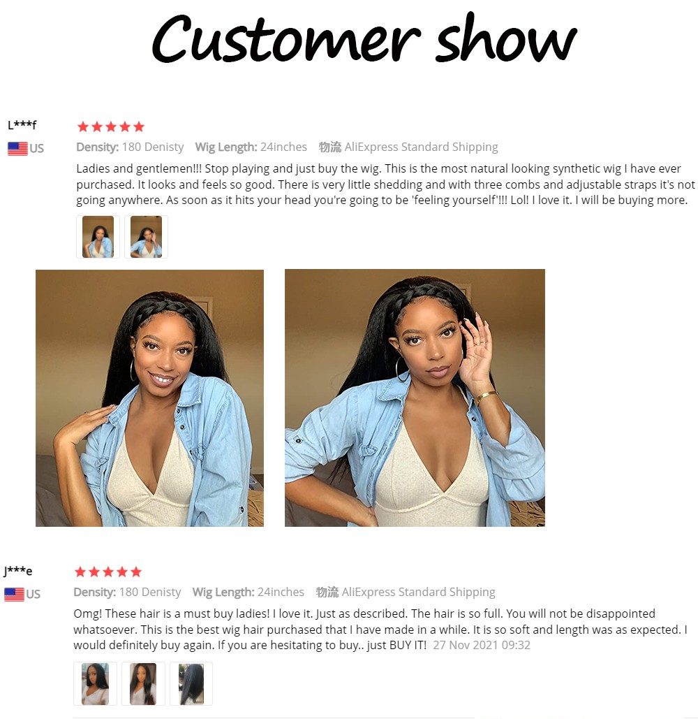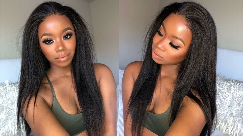 Peluca Recta Rizada Con Malla Frontal Para Mujer, Cabello Sintético Con Temperatura De Calor, Sin Pegamento Color Negro Yaki, 180% Densidad